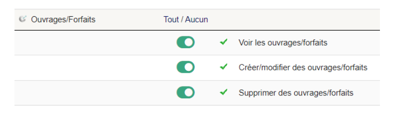 – Afficher uniquement l’ouvrage/forfait : vous permet de ne pas afficher les éléments contenus dans votre forfait. Vos clients ne verront que l’intitulé de votre forfait.